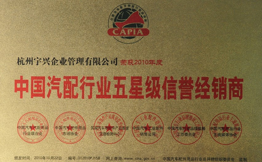 中國汽配行業五星級信譽經銷商中國汽車汽配用品行業聯合會理事單位